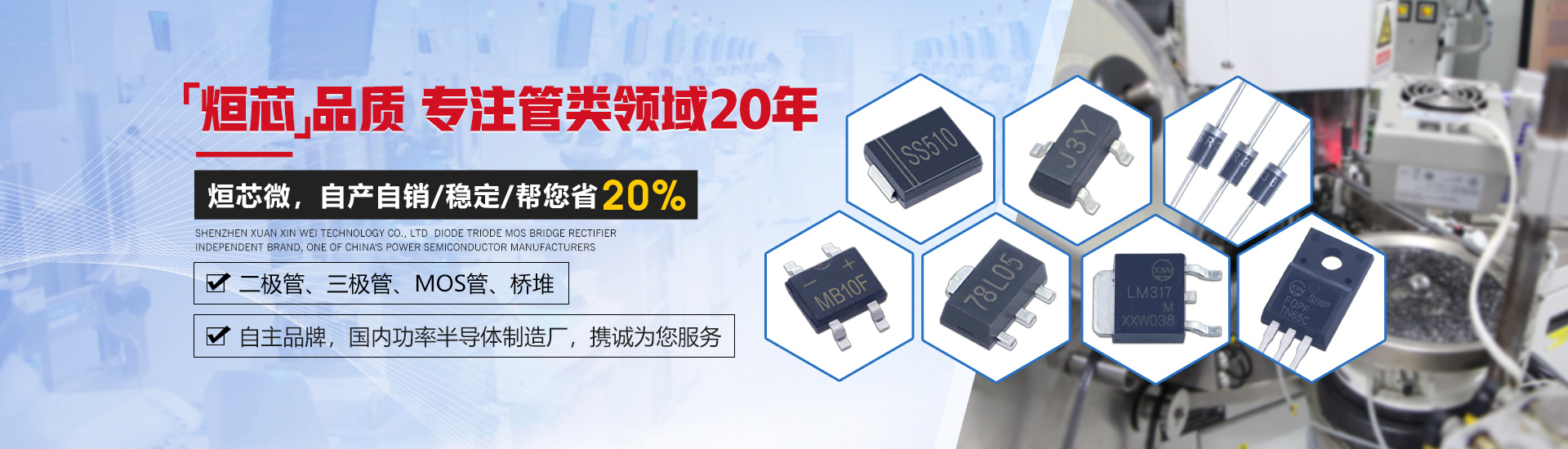 深圳市烜芯微科技有限公司是一家集研發、生產、銷售于一體,專注于二極管、三極管,MOS管、橋堆等功率半導體領域發展的企業。采用國際領先的GPP芯片生產工藝及一心多Die高精密制造工藝,擁有功率半導體器件工程實驗室,全自動高精密生產設備,產品層層把控,全程可追溯,保障了每只產品的卓越品質。 產品封裝包括SMA,SMAF,SMB,SMBF,SMC,SOD-123,SOD-123FL,SOD-323,SOD-323FL,SOD-523,SOD-723,SOT-23,SOT-89,SOT23-3L,SOT23-5L,SOT23-6L,SOT-223,SOT-523,SOT-723,DO-41,DO-15,DO-27,DO-35,R-1,R-6,LL-34,LL-41,TO-277,TO-92,TO-92S,TO-92L,TO-126,TO-251,TO-252,TO-262,TO-263,TO-220,TO-220F,TO-247,TO-3P,TO-264,MBS,MBF,MBM,ABS,UMB,UMSB,DB,DBS,D3K,KBP,GBP,GBU,GBL,GBJ,KBL,KBU,KBJ,KBPC,KBPC6,KBPC8,KBPC-W,DNF,TSSOP-8,TSSOP-16,SOP-4,SOP-6,SOP-8,SOP-10,SOP-14,SOP-16,DIP-4,DIP-6,DIP-8,DIP-10,DIP-14,DIP-16,月產各封裝達6億只。 公司通過了ISO14001環境管理體系認證,產品均獲得了ISO9001質量體系認證、UL、SGS等認證,符合歐盟最新RoHs指令。擁有和致力于烜芯微/XXW自主品牌產品的推廣,提供技術支持,選型替換,cost down方案及擁有專業的生產管理團隊和銷售團隊,保證了供貨穩定及售前選型服務等問題。 公司產品廣泛應用于開關電源、適配器、逆變器、控制器、汽車電子、家用電器、通訊設備、無線充、鋰電池保護板、驅動電機、安防警報、太陽能光伏產業等多個領域。取得了國內外眾多品牌大廠的認可與合作,我們將堅持奉行“烜芯品質,誠信經營,合作共贏”為公司經營理念!竭誠為新老客戶提供優質的產品及服務。